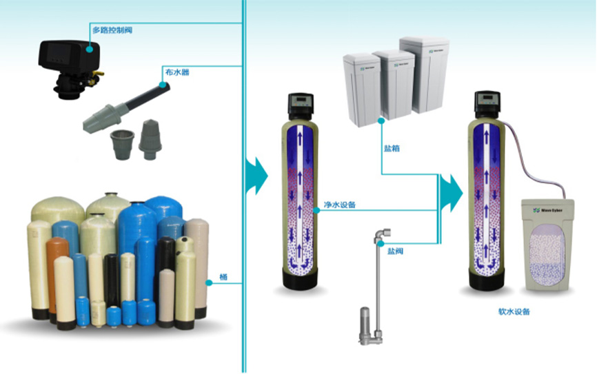 As a novel component for water industry covering residential, commercial and industrial applications, composite pressure tank is an ideal water treatment loading container and reaction container with excellent electrical insulation, corrosion resistant and heat insulation performance. It is most commonly used as the core component of purification and softening machine. If filled with various kinds of filtration media, composite pressure tank could be used for preparation of softened water, drinking water, pure water or ultra-pure water for industrial applications. If filled with filter material such as active carbon or quartz sand, it could be used to remove suspending matters, organic pollutants, heavy metal ions for pre-purification of water; If filled with exchanging agents such as ion exchange resin, it could be used for removing selected ions. The most common use is removing calcium and magnesium ions in water for softening.